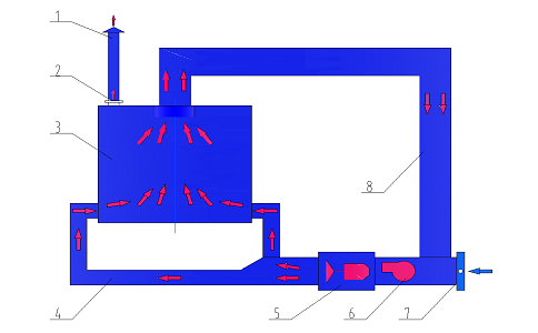 采油樹天然氣噴涂生產(chǎn)線烘干室工作原理:采用熱風循環(huán)對流加熱的方式進行加熱。通過循環(huán)風機及管道,空氣經(jīng)加熱器加熱后進入烘干室內(nèi)與工件進行熱交換,實現(xiàn)對工件的升溫加熱,換熱后的空氣由回風管收集,與補充的新鮮空氣一起返回到加熱室。