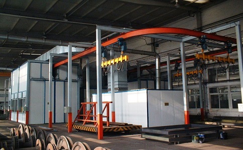 涂裝生產(chǎn)線全線工件輸送系統(tǒng)采用空中懸掛和地面滑橇相結(jié)合的機(jī)械化輸送方式,運(yùn)行平穩(wěn)、快速便捷,采用PLC可控編程,根據(jù)生產(chǎn)工藝的實(shí)際要求編程控制——實(shí)行現(xiàn)場總線中心監(jiān)控,分區(qū)自動(dòng)實(shí)現(xiàn)轉(zhuǎn)接運(yùn)行。