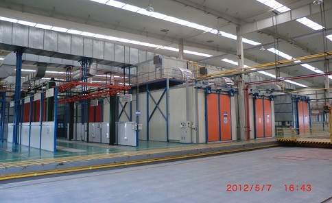 噴粉 涂裝生產(chǎn)線 粉末涂料通過(guò)靜電粉末噴涂設(shè)備噴涂在工件表面,在靜電作用下,粉末均勻吸附在工件表面,形成粉末涂料;粉末涂料經(jīng)高溫烘烤、整平、固化后成為不同效果的最終涂料。噴涂效果在機(jī)械強(qiáng)度、附著力、耐腐蝕性、耐老化性等方面優(yōu)于噴涂工藝。